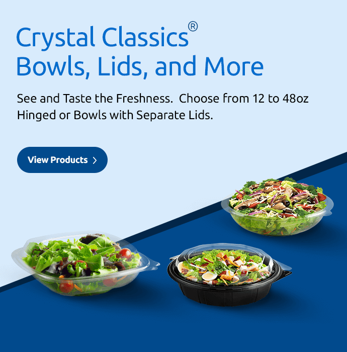 Crystal Classics® is Anchor Packaging’s premium line of crystal-clear bowls, lids, and hinged containers—engineered to showcase freshness and elevate presentation. Designed for both dine-in and grab-and-go applications, these containers combine clarity, durability, and functionality to keep food looking as good as it tastes. Available in a wide range of sizes, Crystal Classics® products are perfect for salads, fruits, pasta, and cold entrées. Each container is made from high-clarity, recyclable materials that enhance food visibility while ensuring leak-resistant, tamper-evident security.